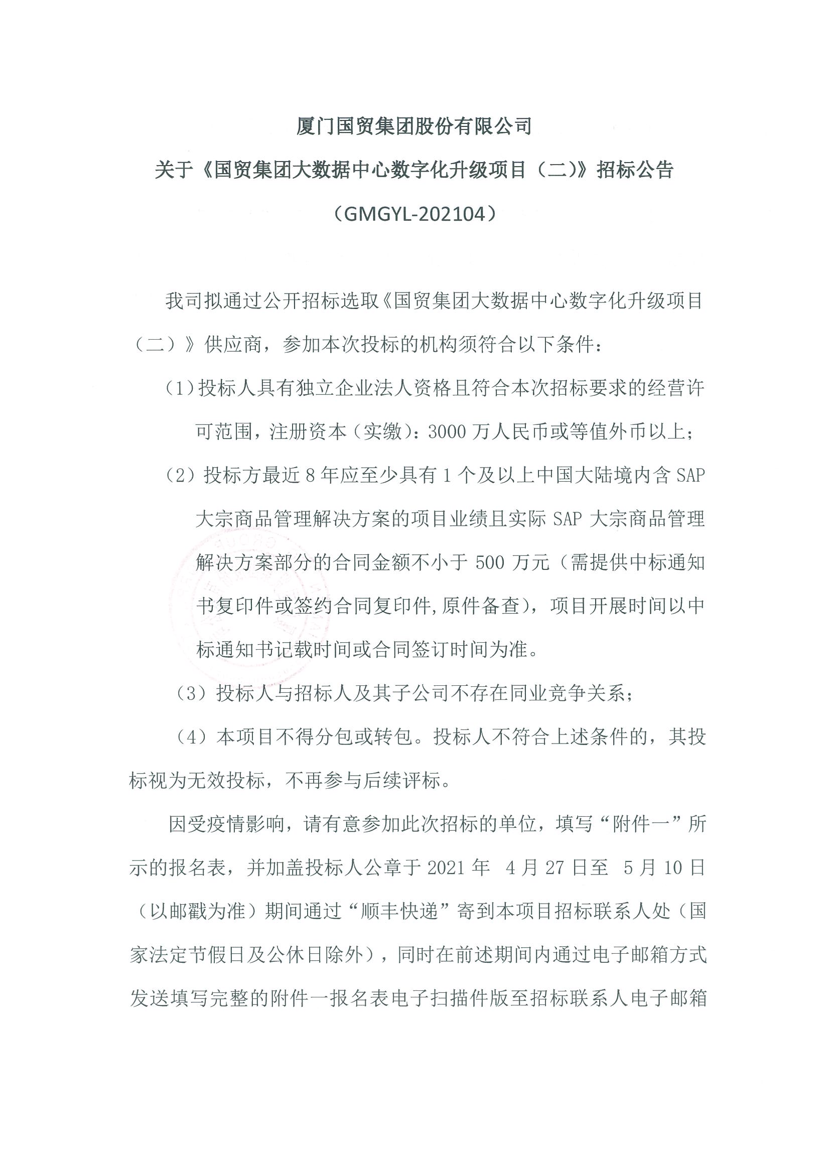 關(guān)于《國貿(mào)集團(tuán)大數(shù)據(jù)中心數(shù)字化升級(jí)項(xiàng)目(二)》招標(biāo)公告