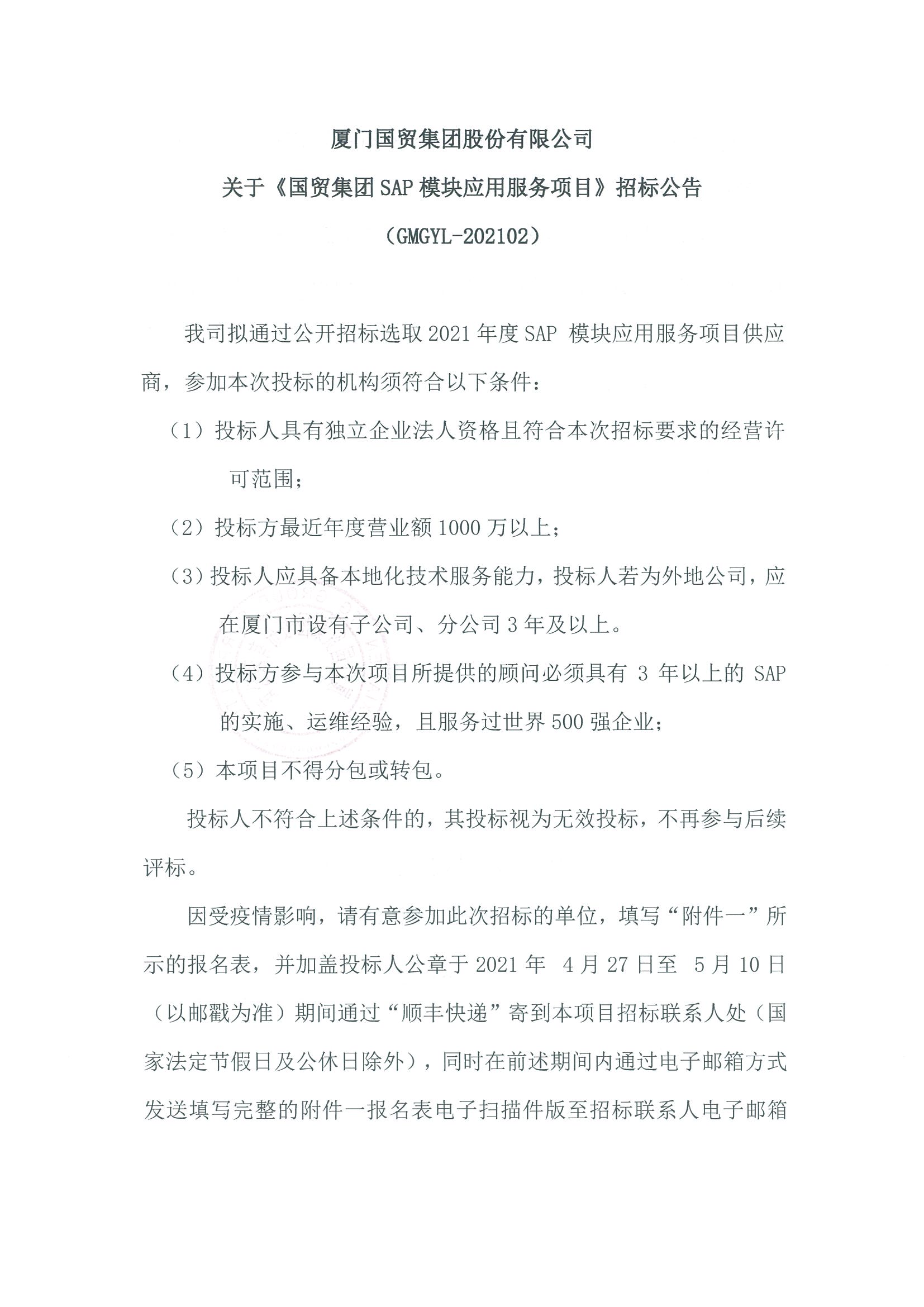 關(guān)于《國貿(mào)集團(tuán)SAP模塊應(yīng)用服務(wù)項(xiàng)目》招標(biāo)公告