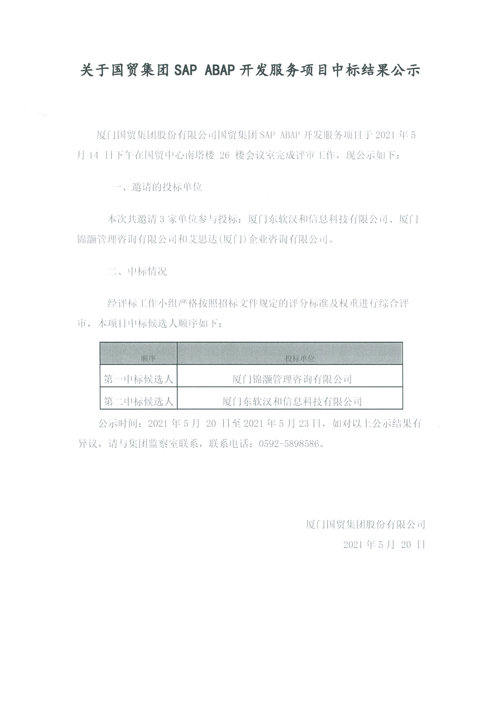 關于國貿(mào)集團SAP ABAP開發(fā)服務項目中標結(jié)果公示