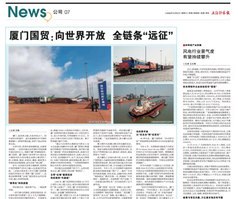 上海證券報 | 廈門國貿(mào):向世界開放 全鏈條“遠征”。